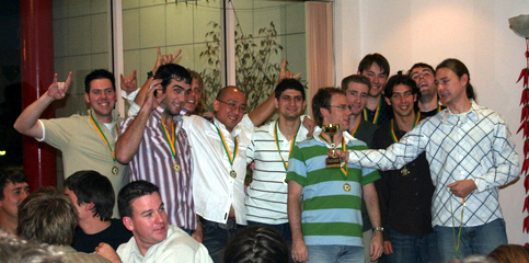 Front from Left: Saxon Hooper(NSW-Centre), Andrew Masson(SA-Forward), Tim Brown(NSW-Forward), Dane Hansen(NSW-Defence), Peter Frisken (QLD-Goals aka Jamie Adams holding Pete's trophy), Dirk Nissen (ACT-Defence)